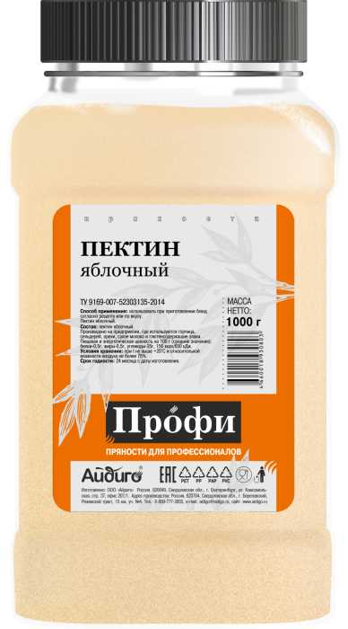 Пектин - природный загуститель, получаемый из яблок. Может применять в постном и вегетарианском меню. Не имеет ярко выраженного вкуса и аромата.