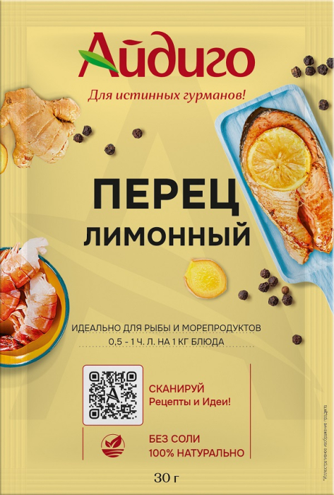 Приправа представляет собой благородный букет черного и белого перцев со свежим оттенком лимона. Подойдет для самых разнообразных блюд. Идеально сочетается с рыбой.
